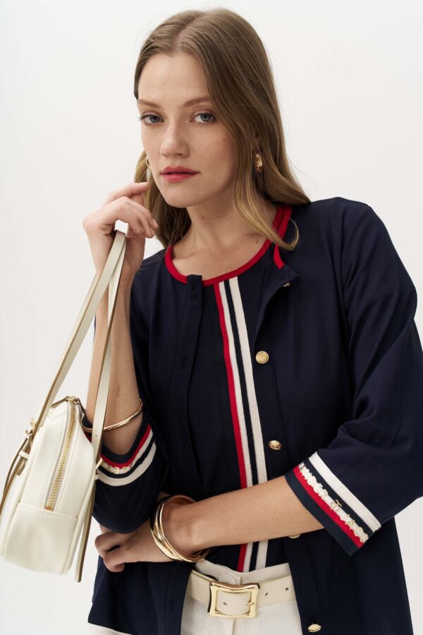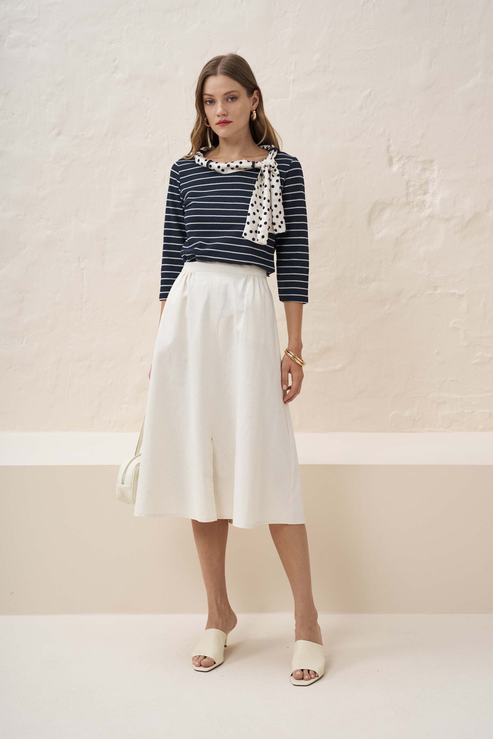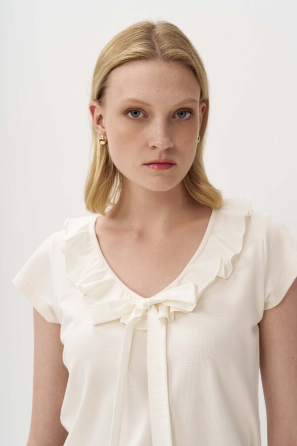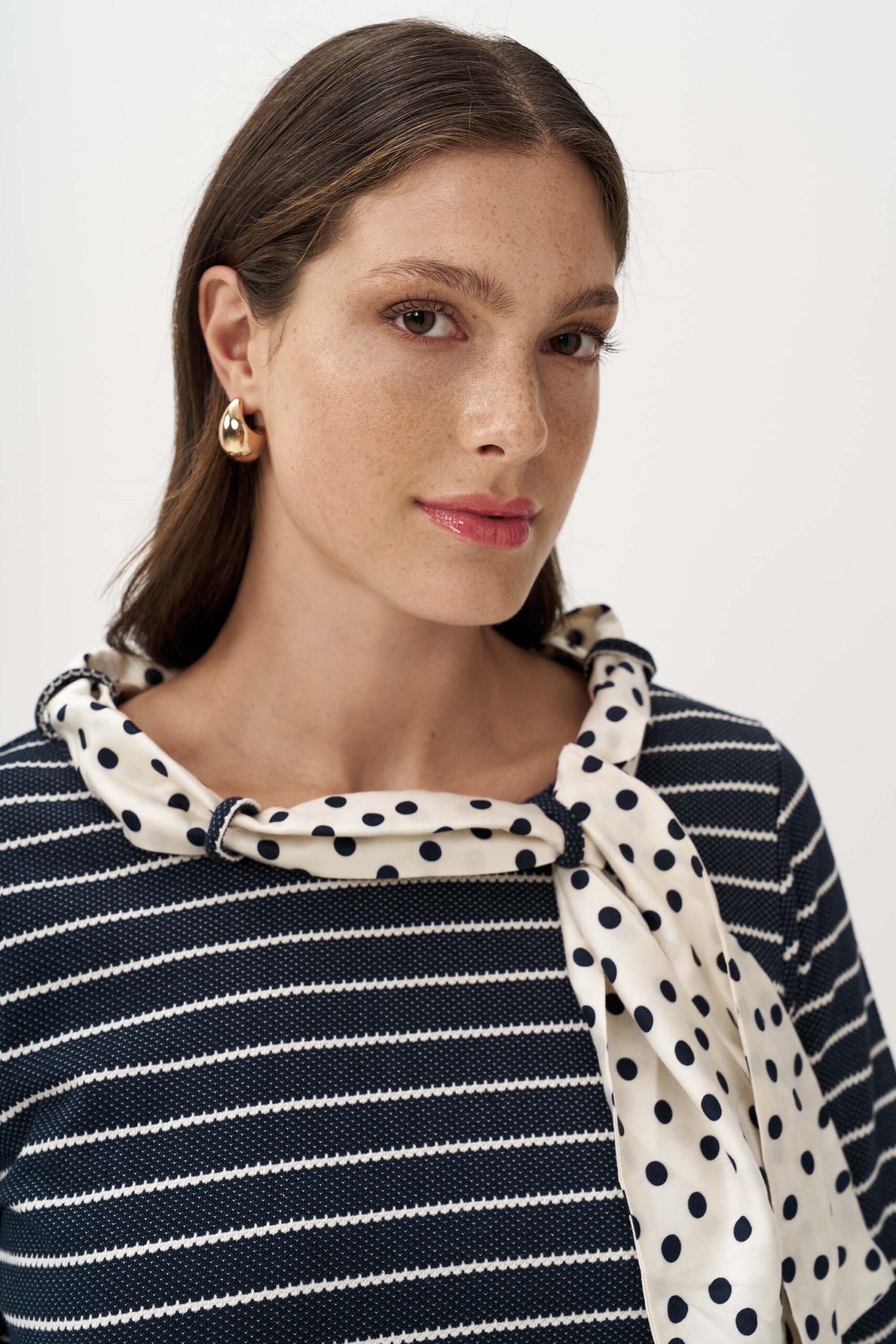 Elegant blouse made of knitted cotton blend fabric with scarf detail