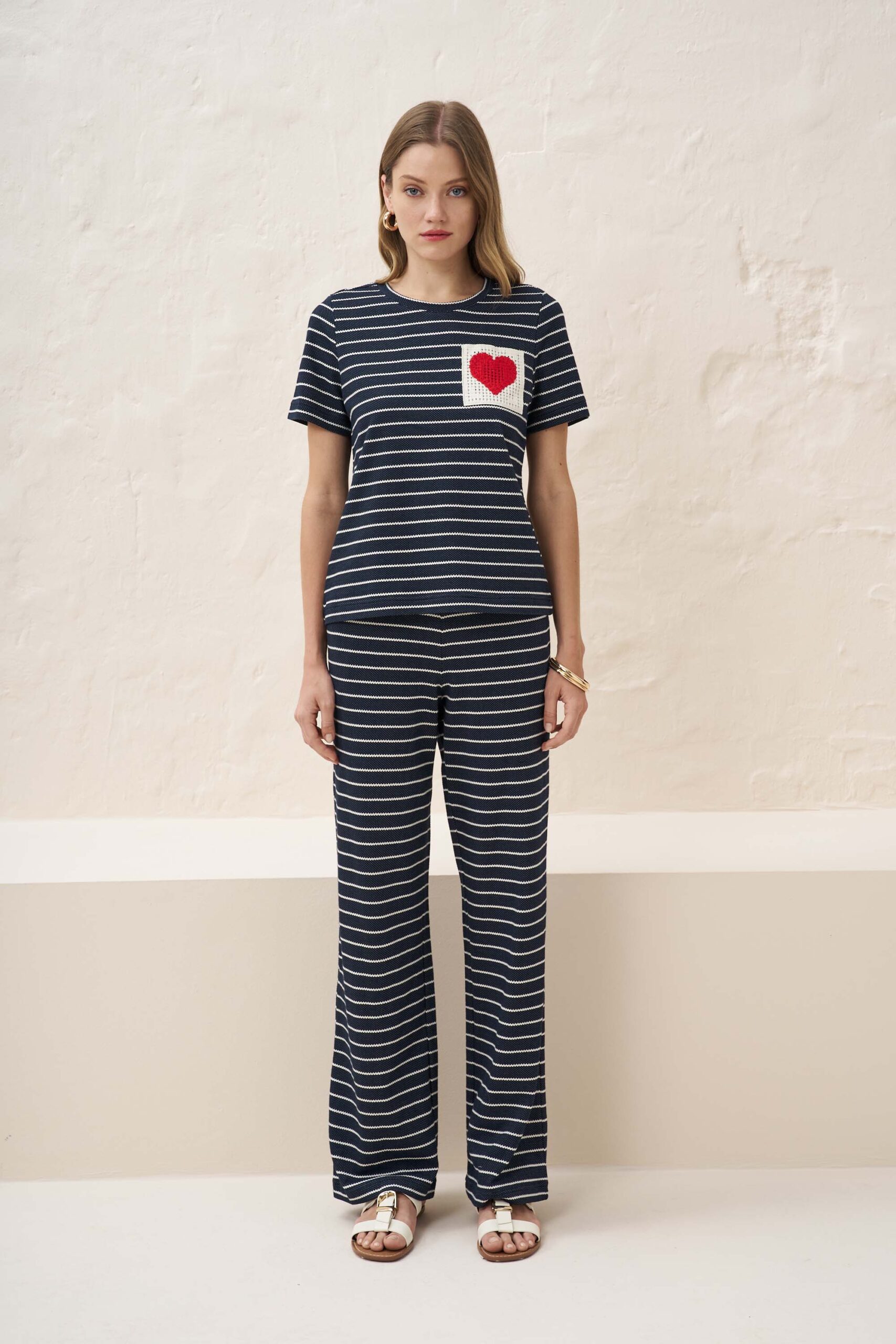 Candy striped blouse with heart motif