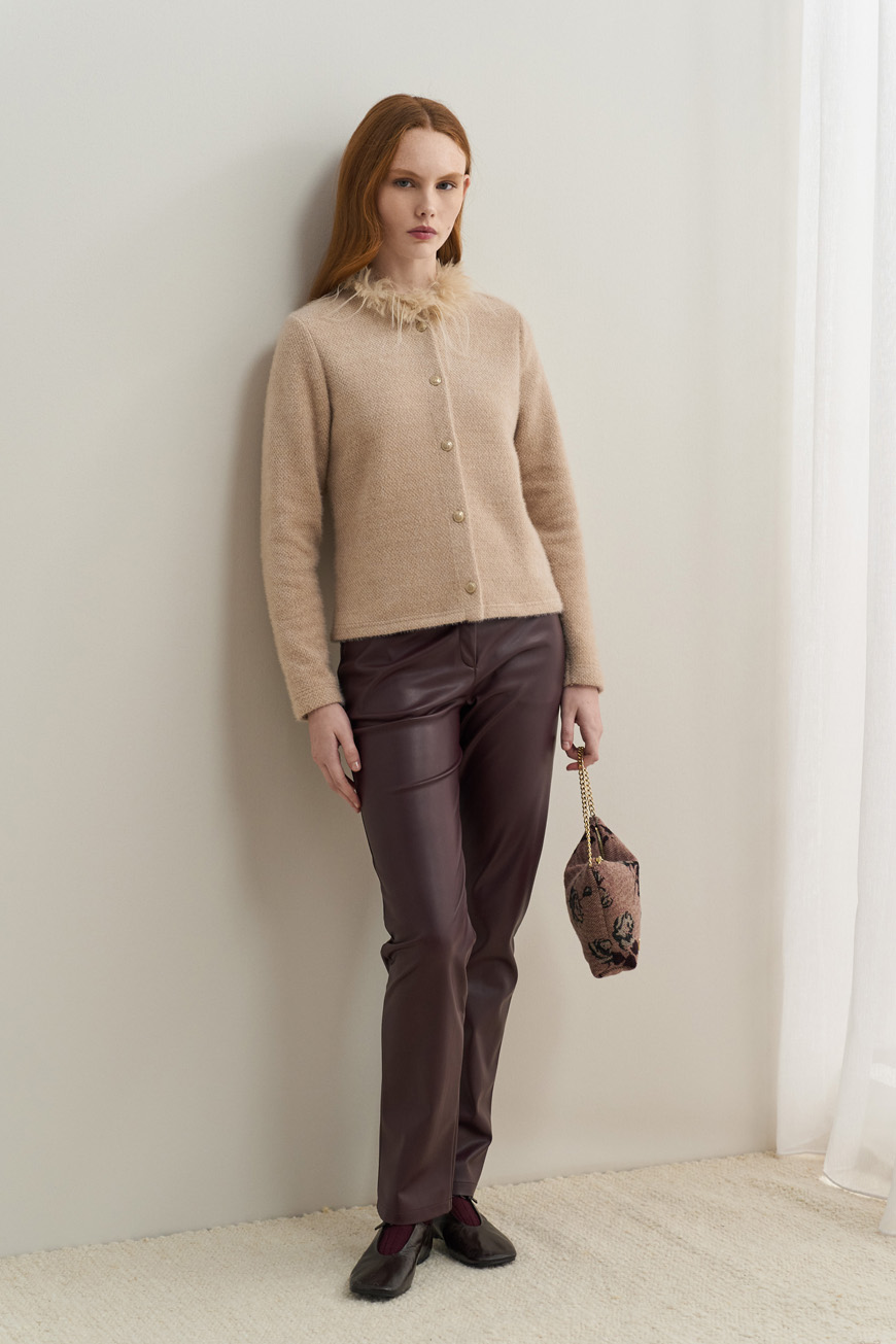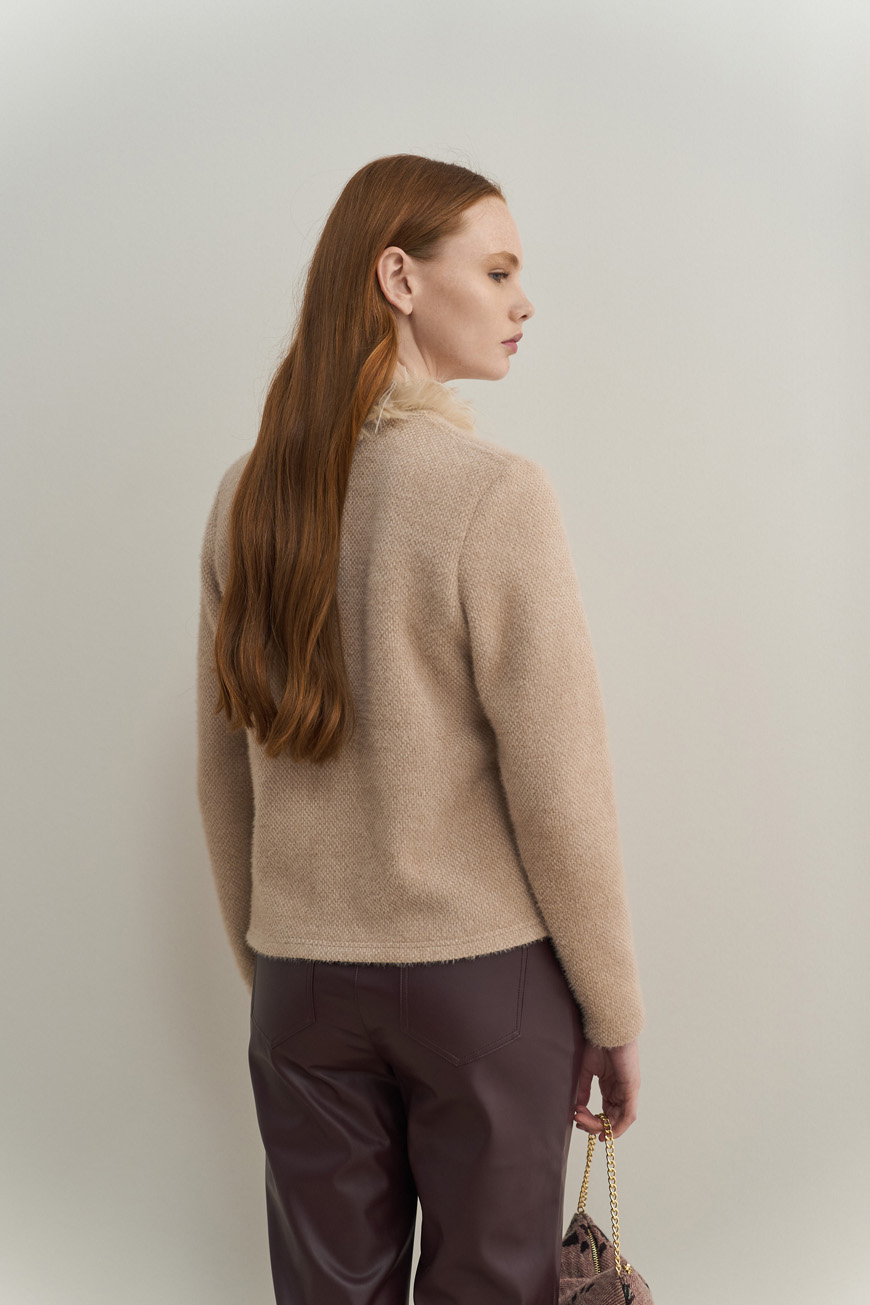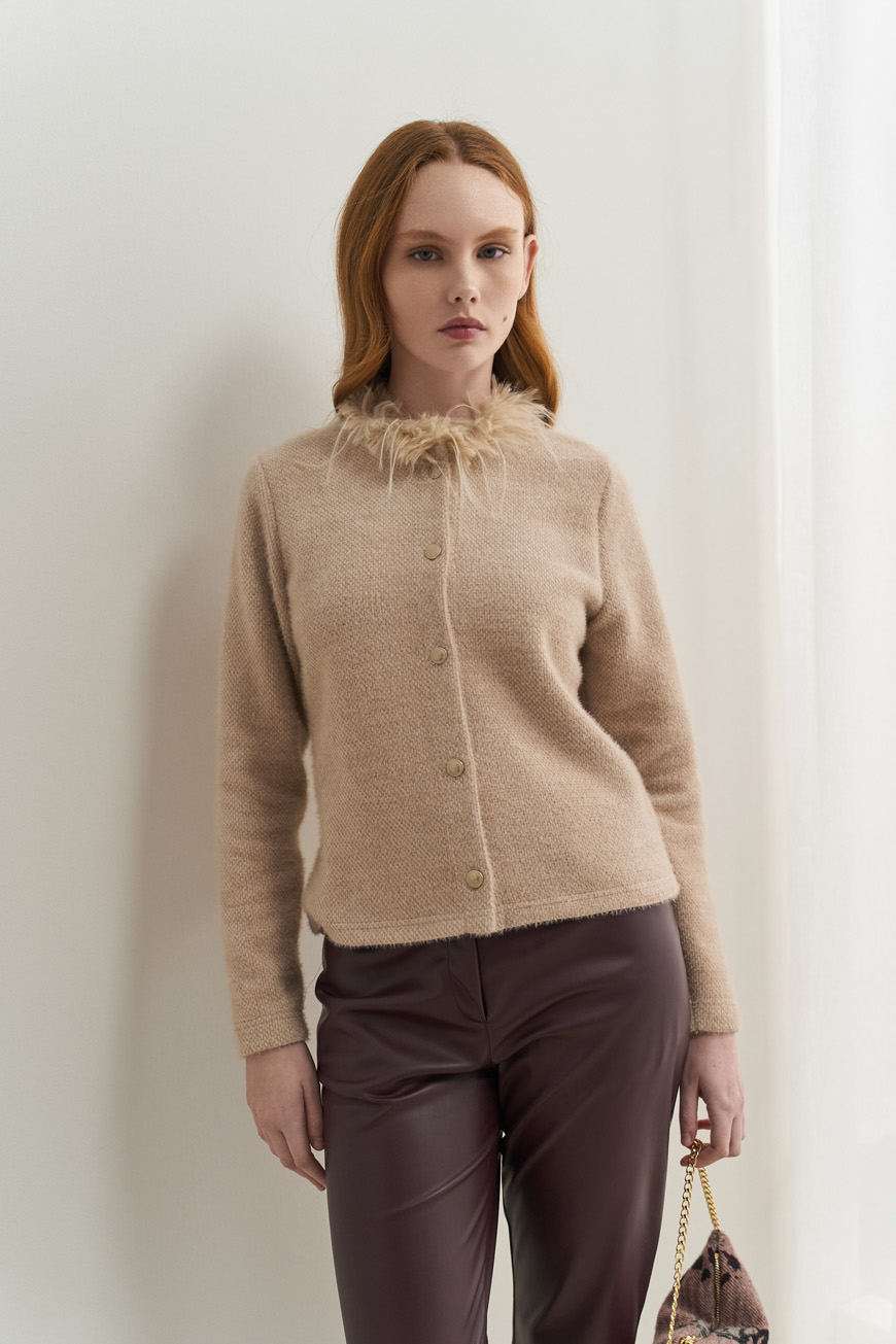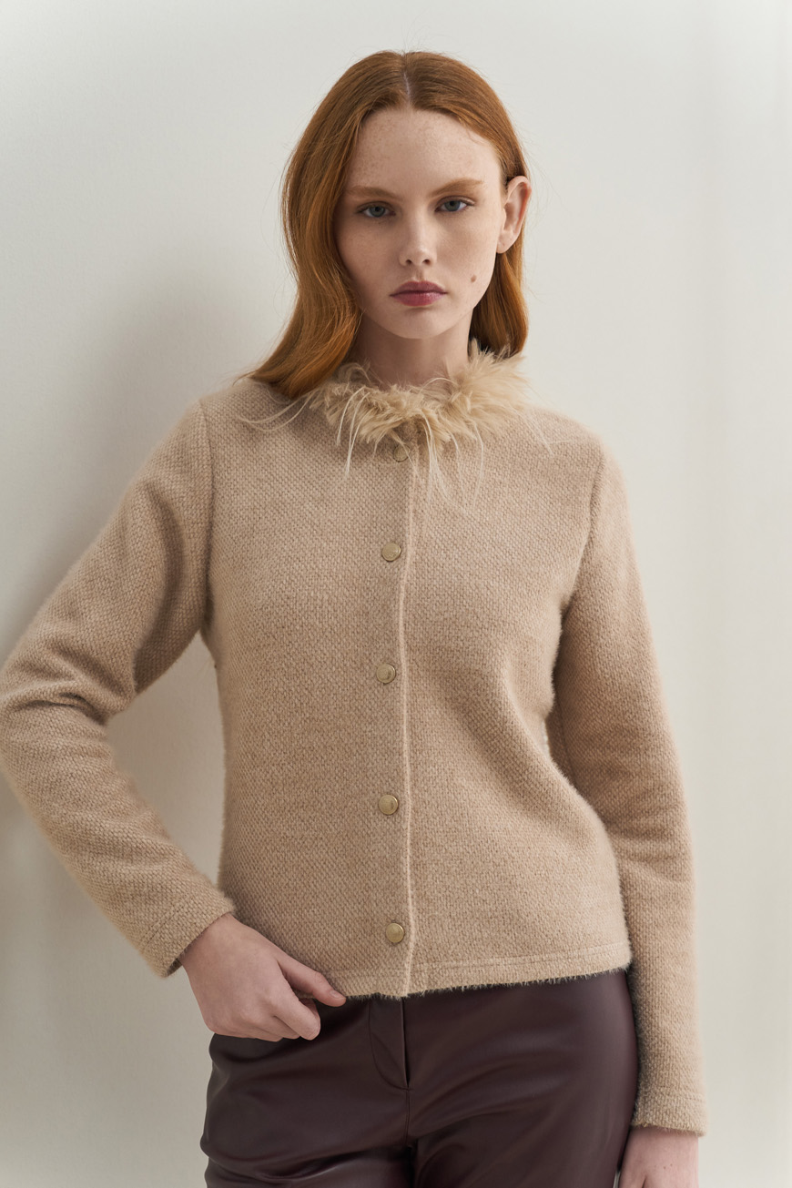 Must-have cardigan made of textured stretch fabric with a detachable accessory