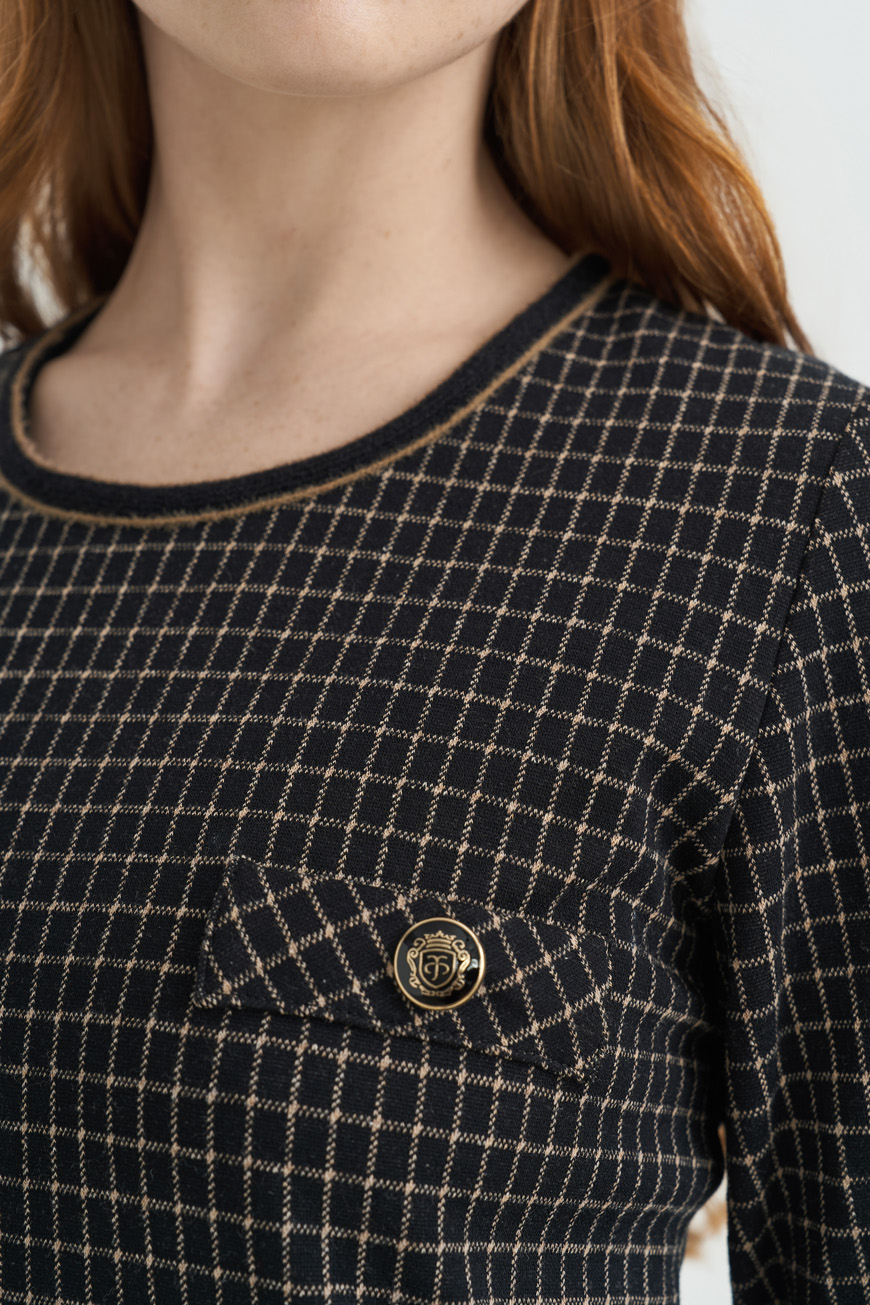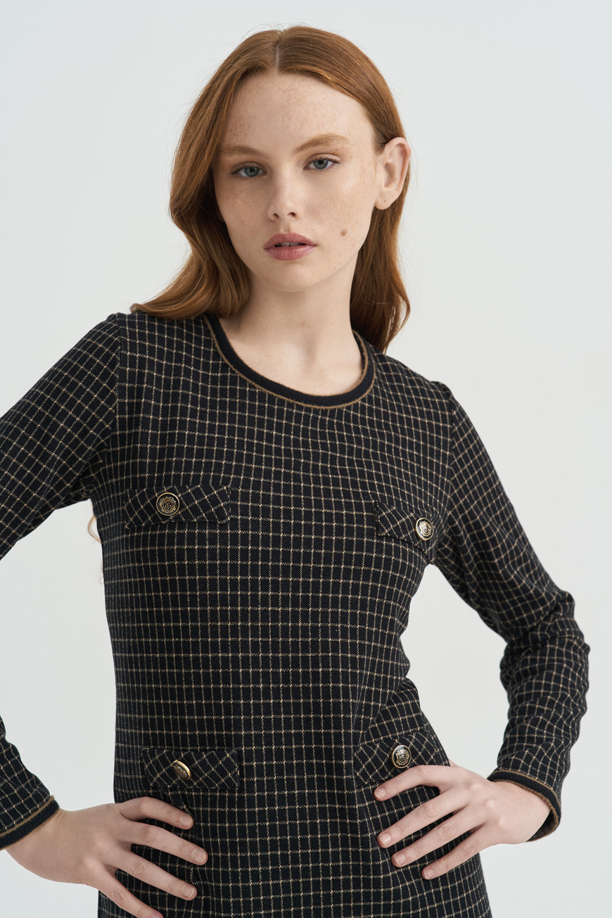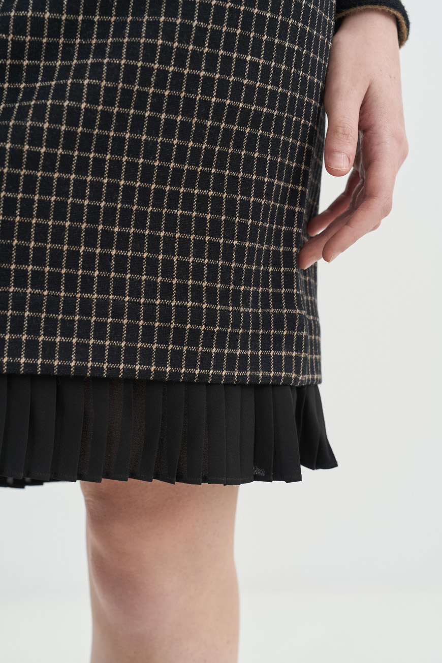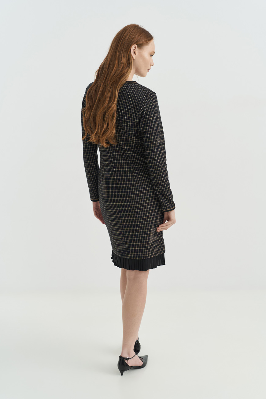 Impressive dress with pleated details made of knitted viscose and cotton blend fabric