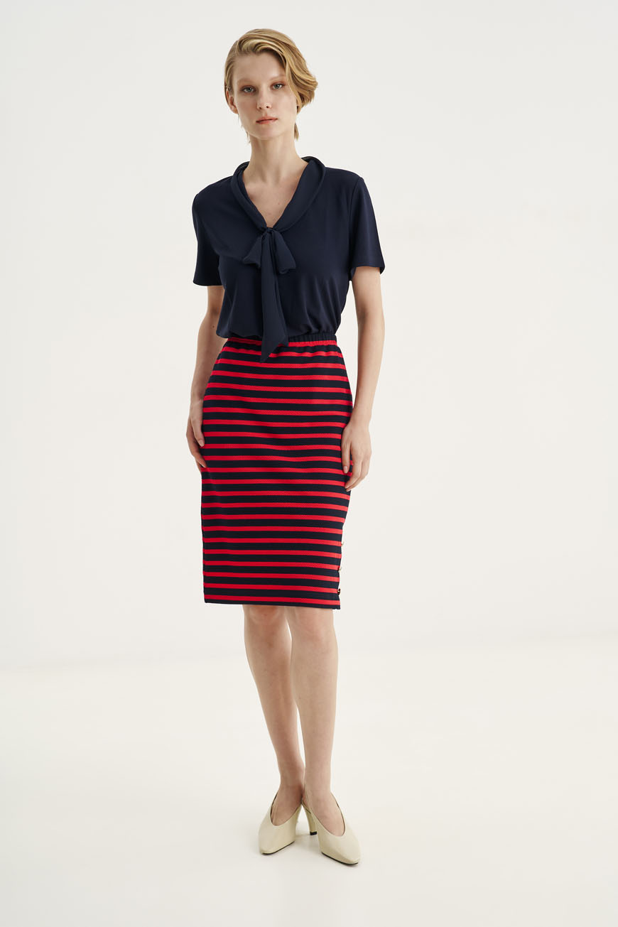 All time classic stiped skirt with elegant details with golden button suitable for office looks or for your city stroll.