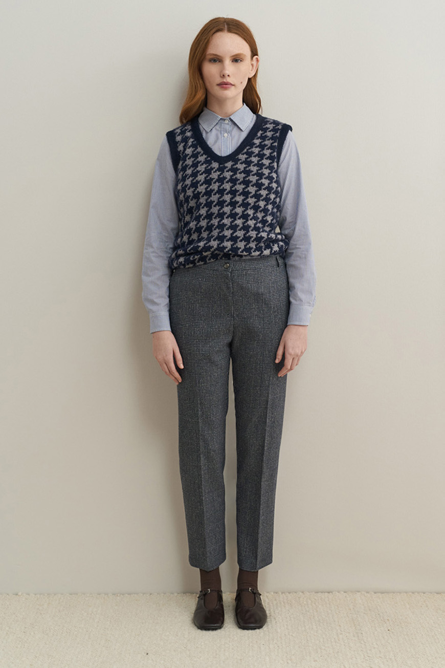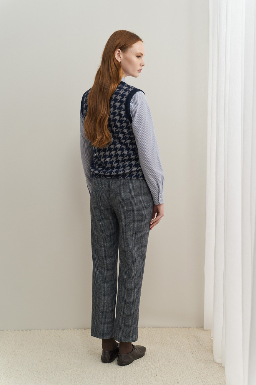 Impressive trousers made of slightly elastic fabric in a prince of wales knit