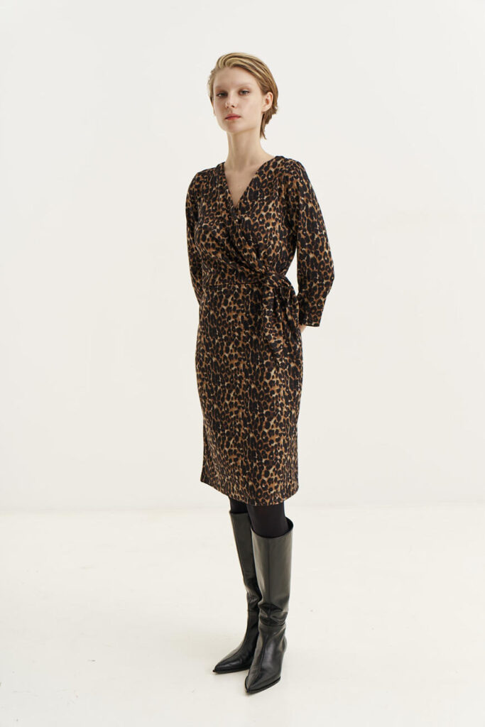 Αν ψάχνεις για κάτι πιο κλασικό αλλά με μοντέρνες πινελιές, το μαύρο φόρεμα με animal print σχέδια στη μέση είναι η τέλεια επιλογή. Συνδύασέ το με ankle boots, μπότες ως το γόνατο ή ακόμα και μαύρες γόβες ανάλογα με την περίσταση. Τα διακριτικά κοσμήματα θα ολοκληρώσουν το look, δημιουργώντας μια διαχρονική εμφάνιση που μπορεί να φορεθεί από το πρωί μέχρι το βράδυ.