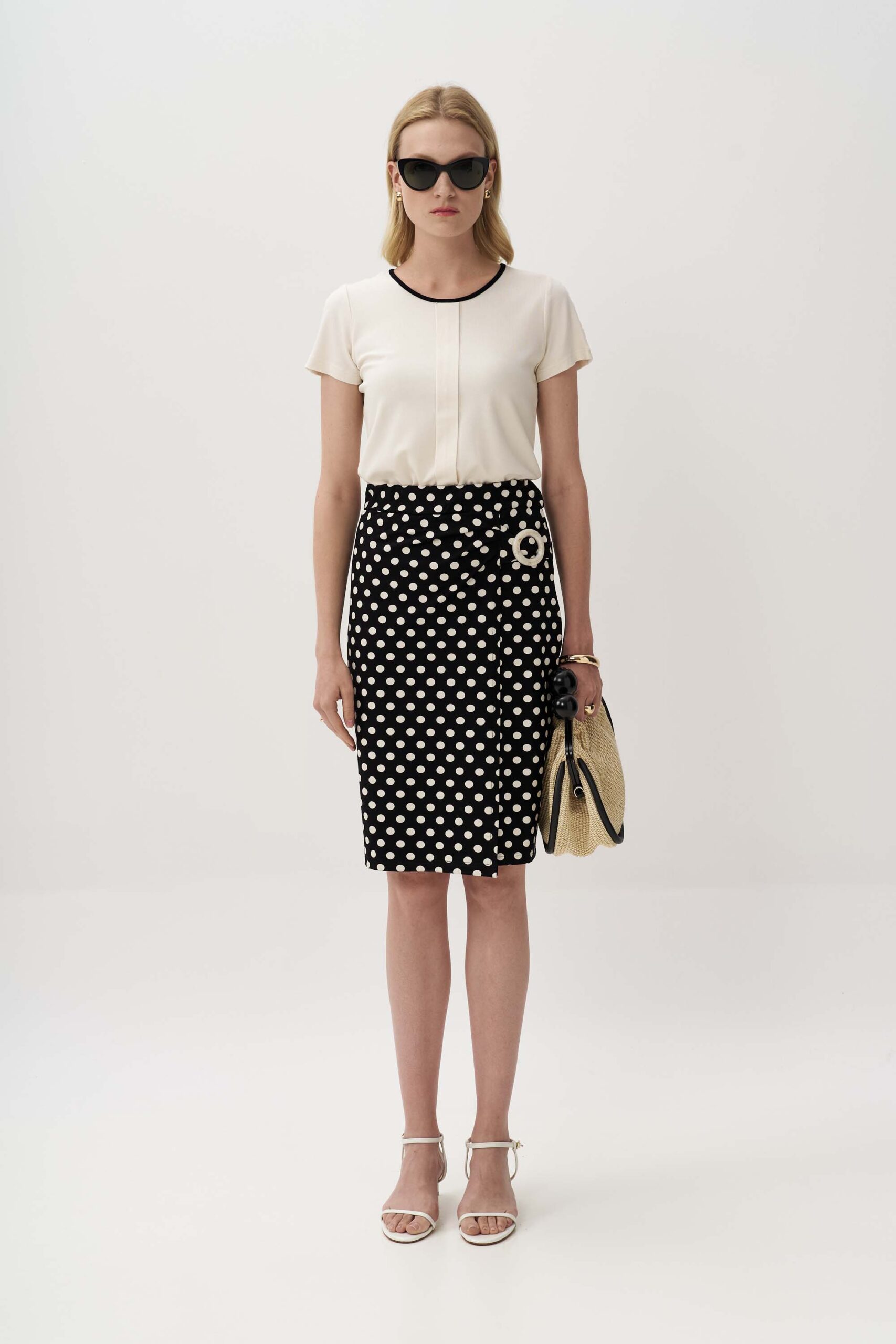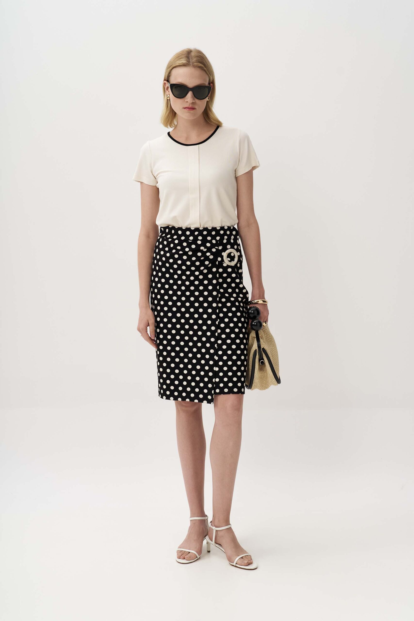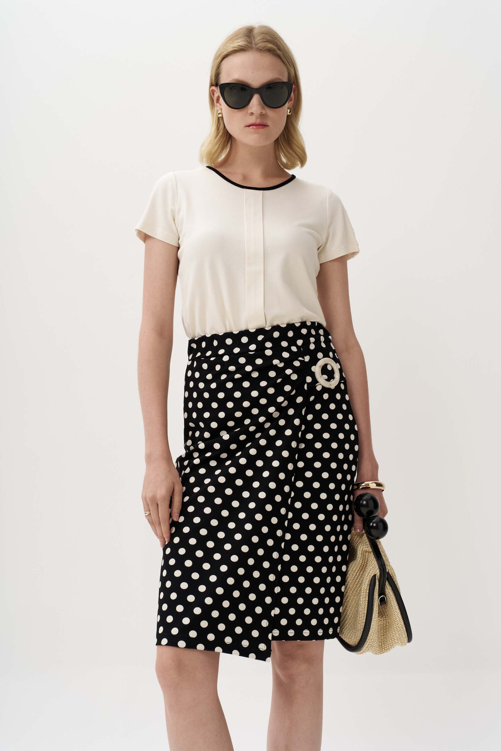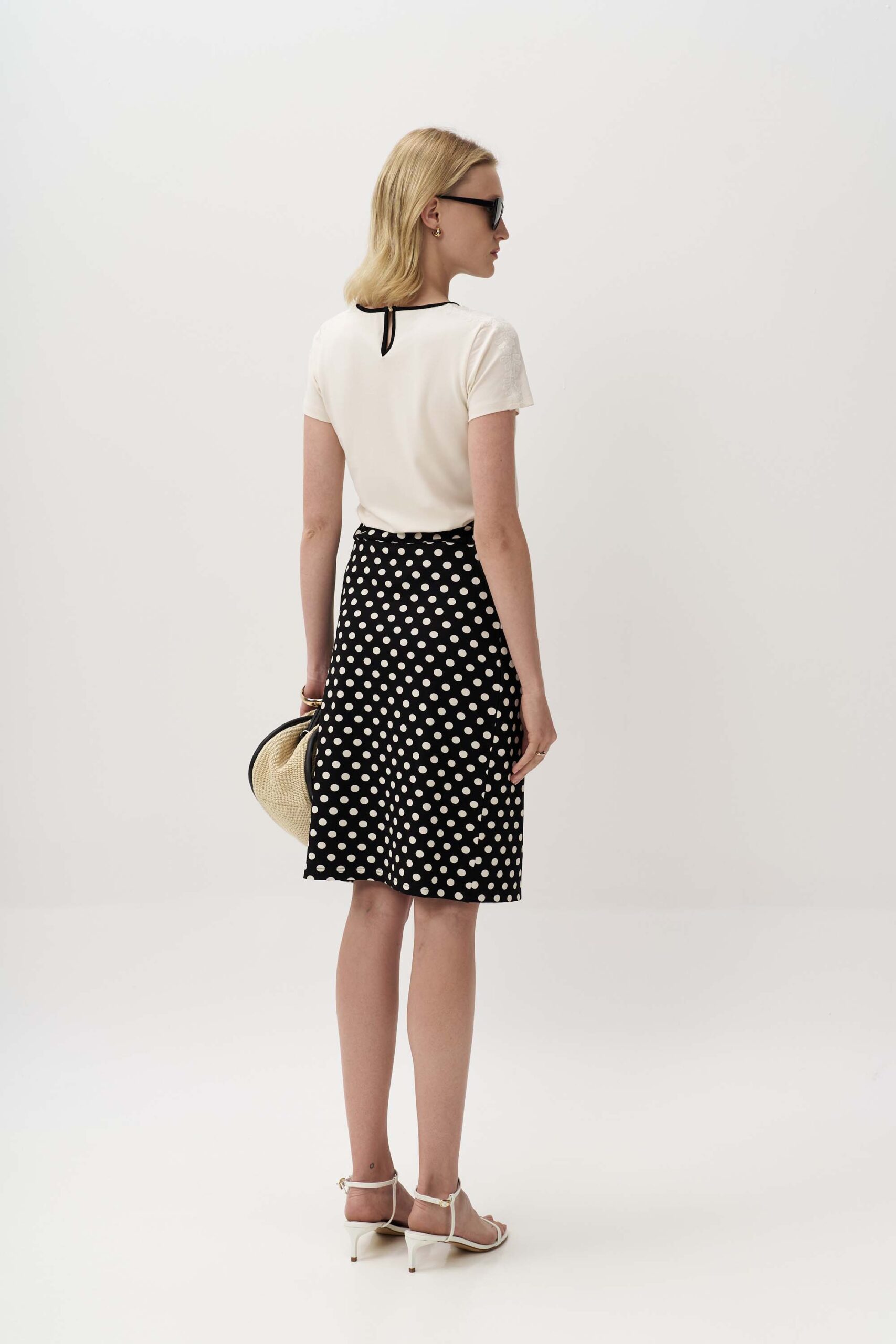 Εντυπωσιακή πουά φούστα από πλεκτό ύφασμα βισκόζης με εφέ δεσίματος στο πλάι