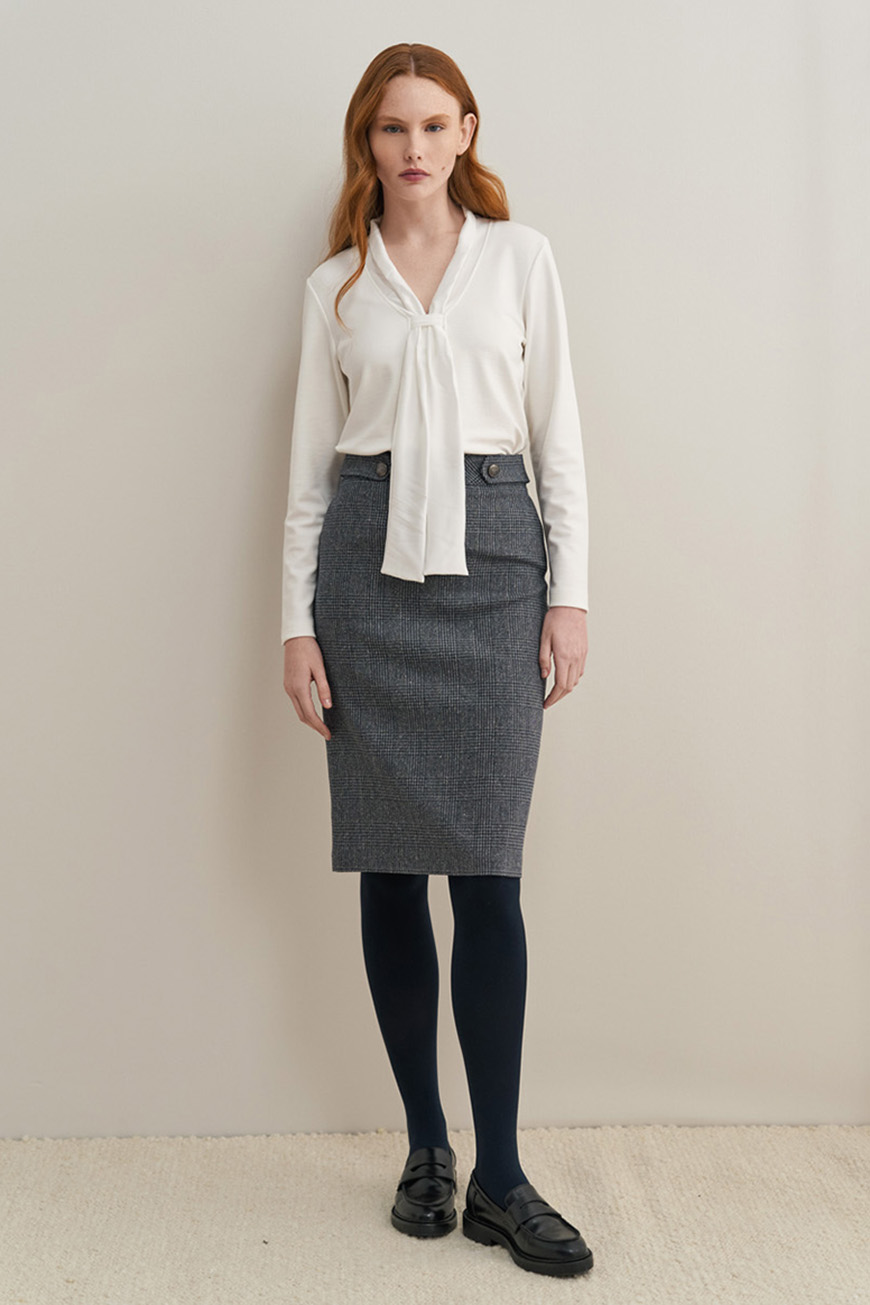 Ίσια φούστα μάλλινο καρό με κουμπώματα