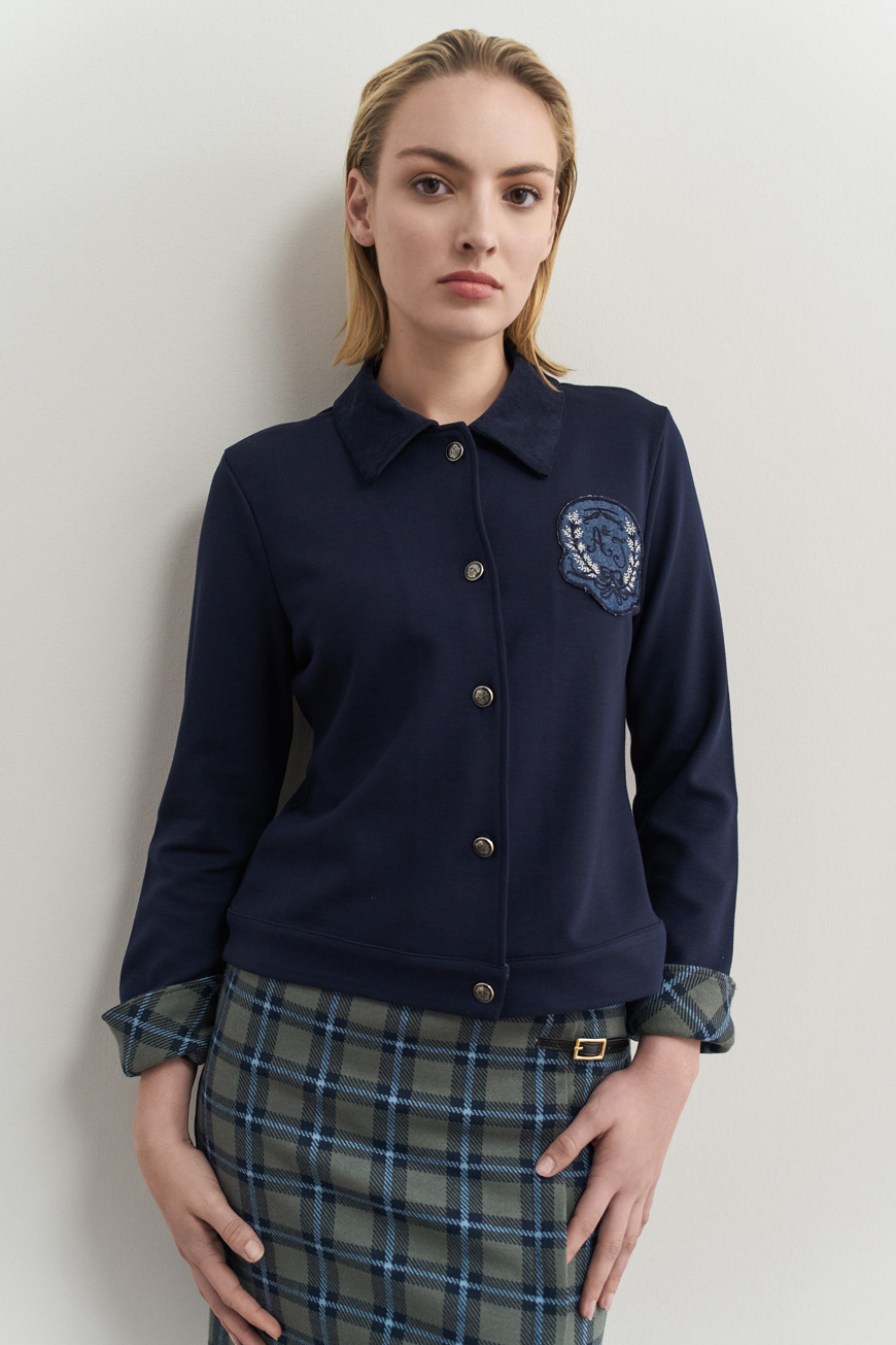 Ζακέτα με αντίθεση κοτλέ γιακά