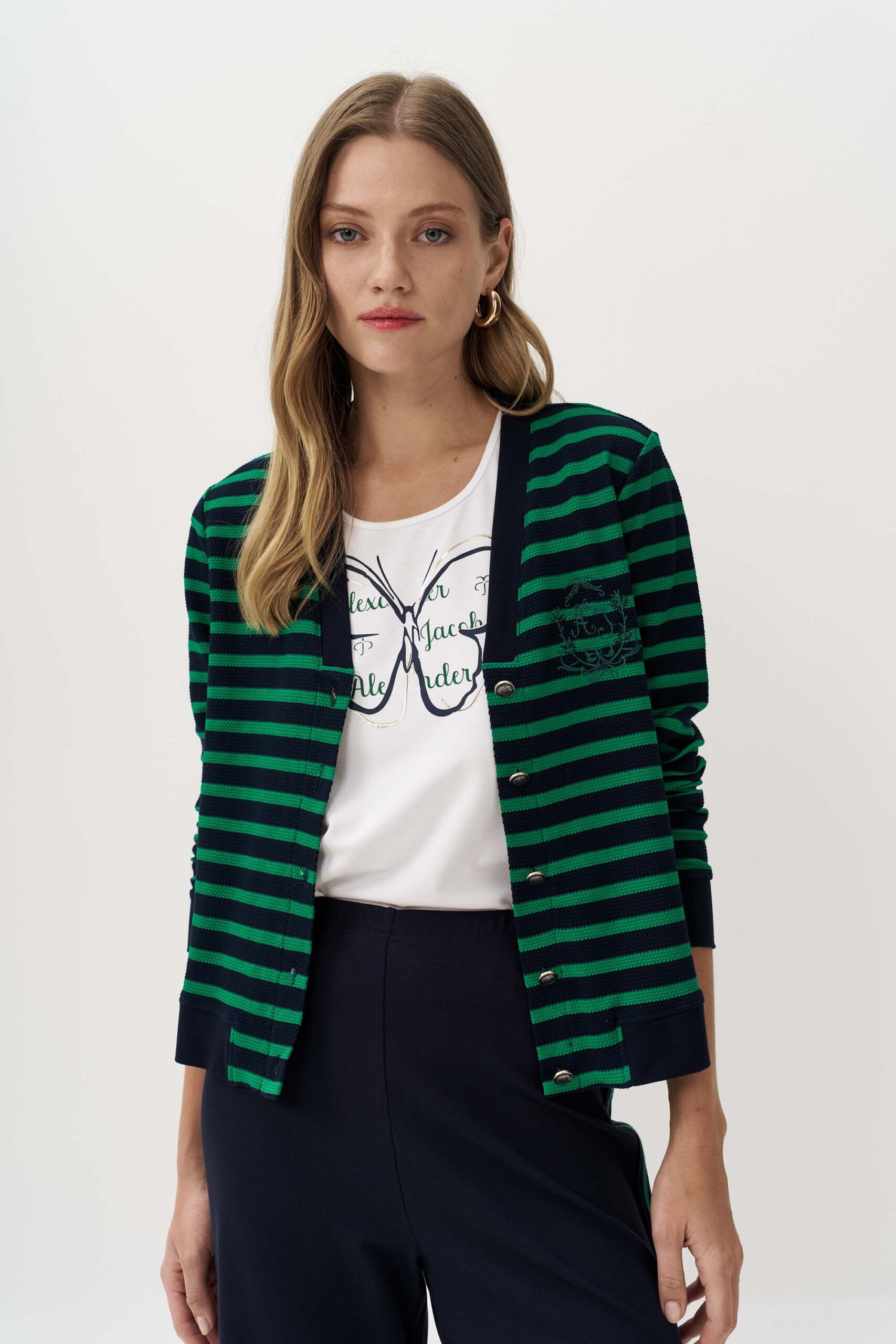 Μοντέρνα ριγέ ζακέτα από πλεκτό ύφασμα μίξης βαμβακιού
