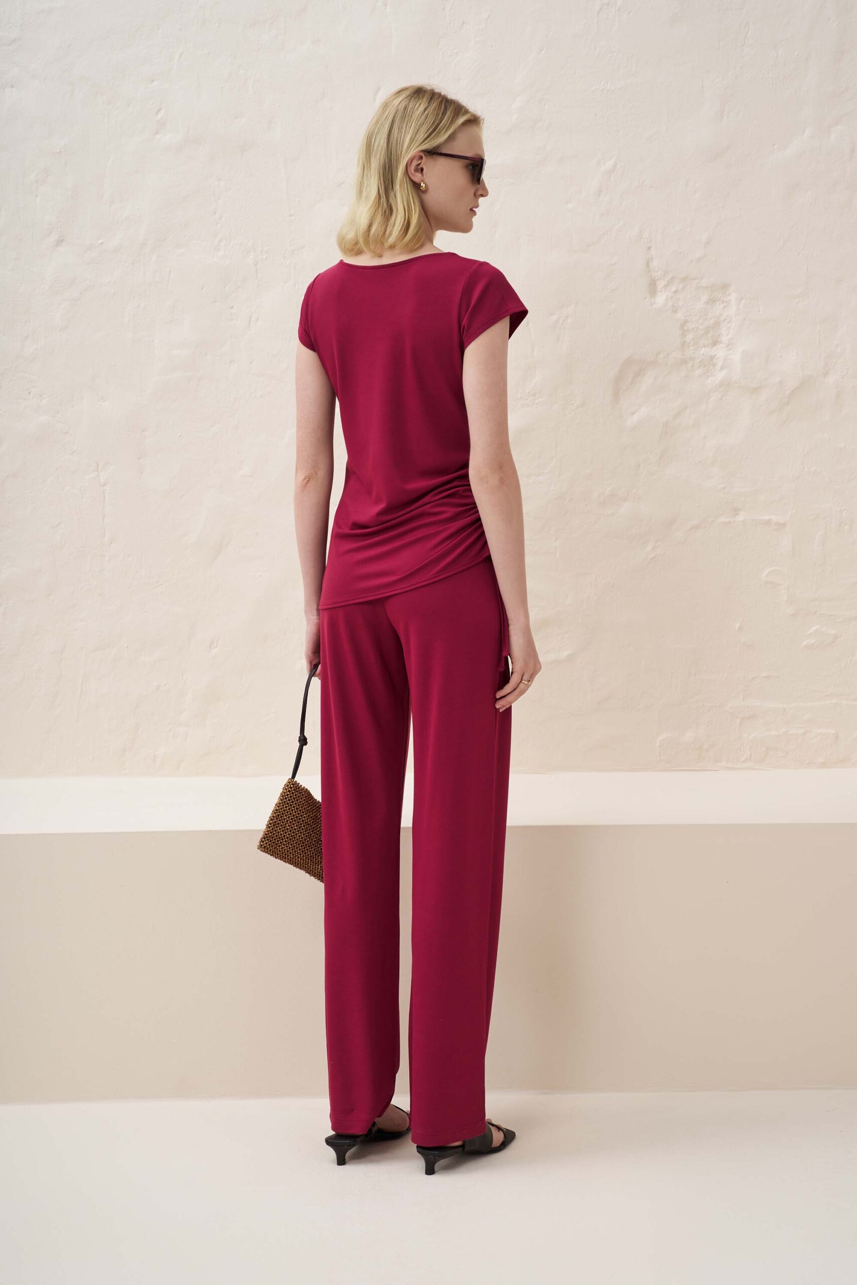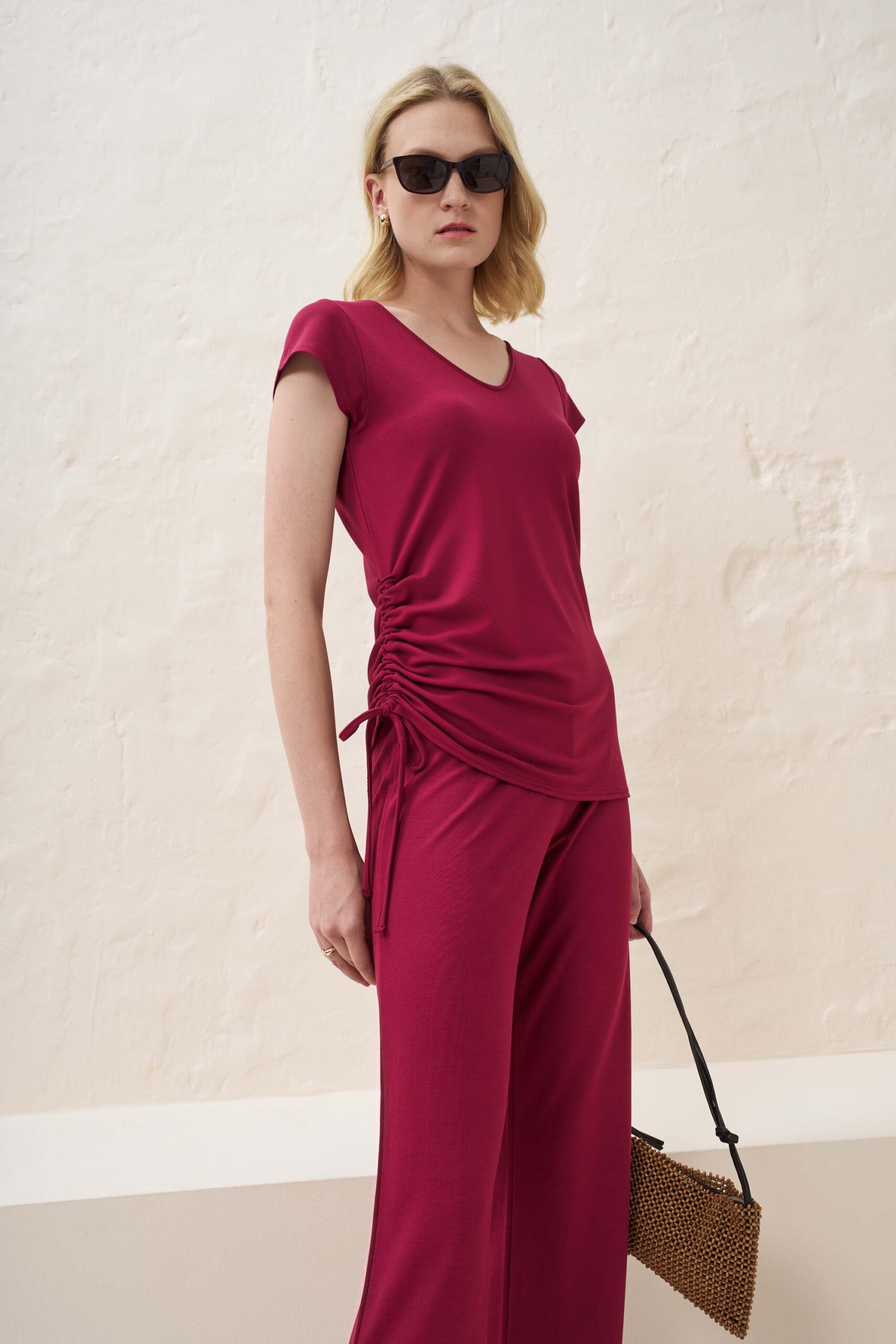 Sport chic μπλούζα με δυνατότητα προσαρμογής μήκους απο τη μία πλευρά από πλεκτό ύφασμα βισκόζης