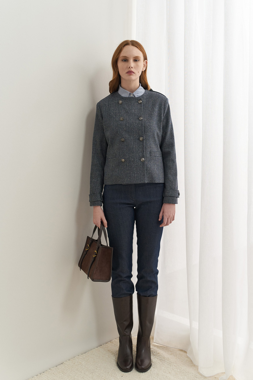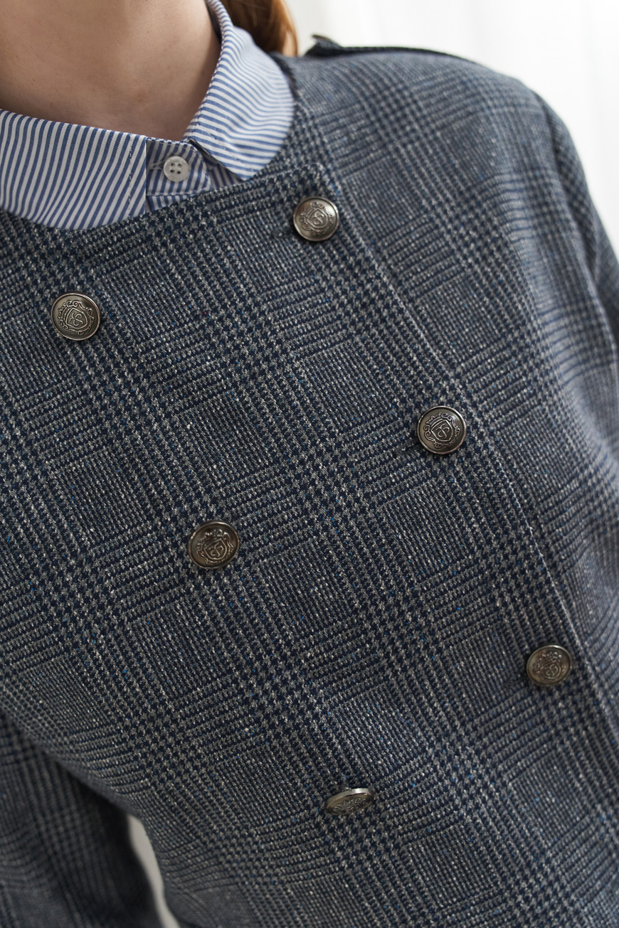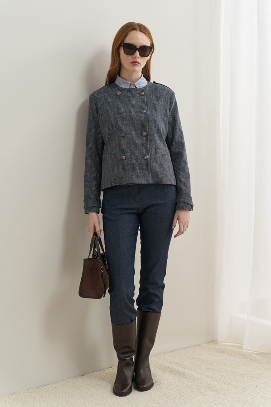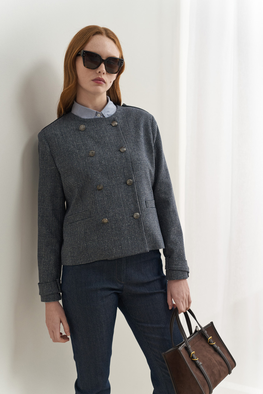 Εντυπωσιακό σακάκι από ύφασμα ελαφρά ελαστικό σε πλέξη prince of wales τύπου militaire
